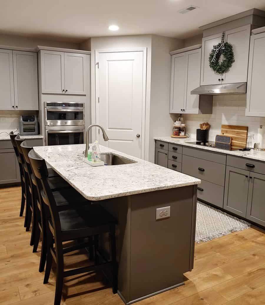Adding color is a big trend in kitchen design. You don’t have to stop with your cabinet doors. Blue is a popular color for kitchen cabinets. Both light and dark blue shades are great choices.