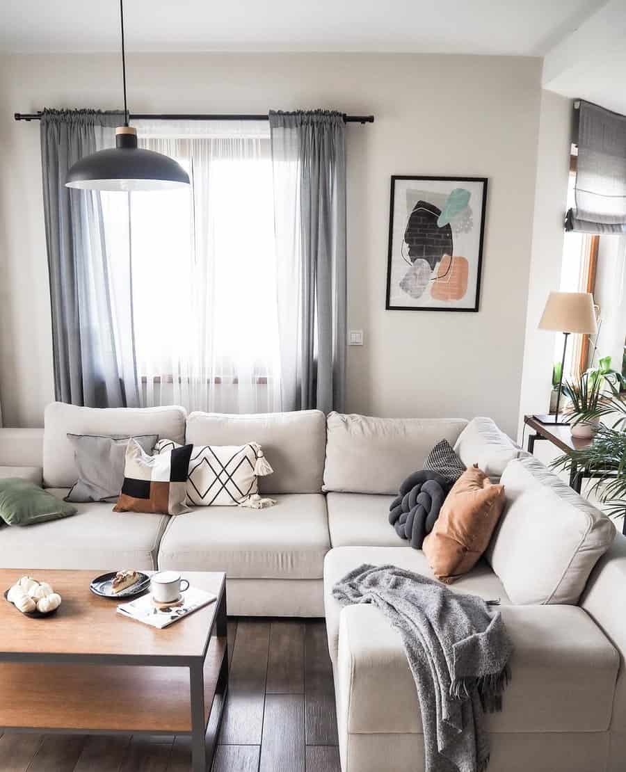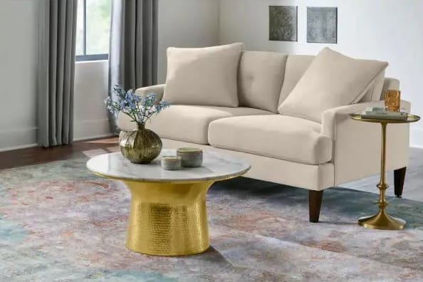 When choosing the material that your accent tables are made out of, consider your budget and the material of the other furniture in your living room. Marble tables can be a beautiful accent to a luxurious or elegant living room but can be expensive. Solid wood adds a sense of quality to your living room. If you’re on a budget, engineered wood is an affordable base material.