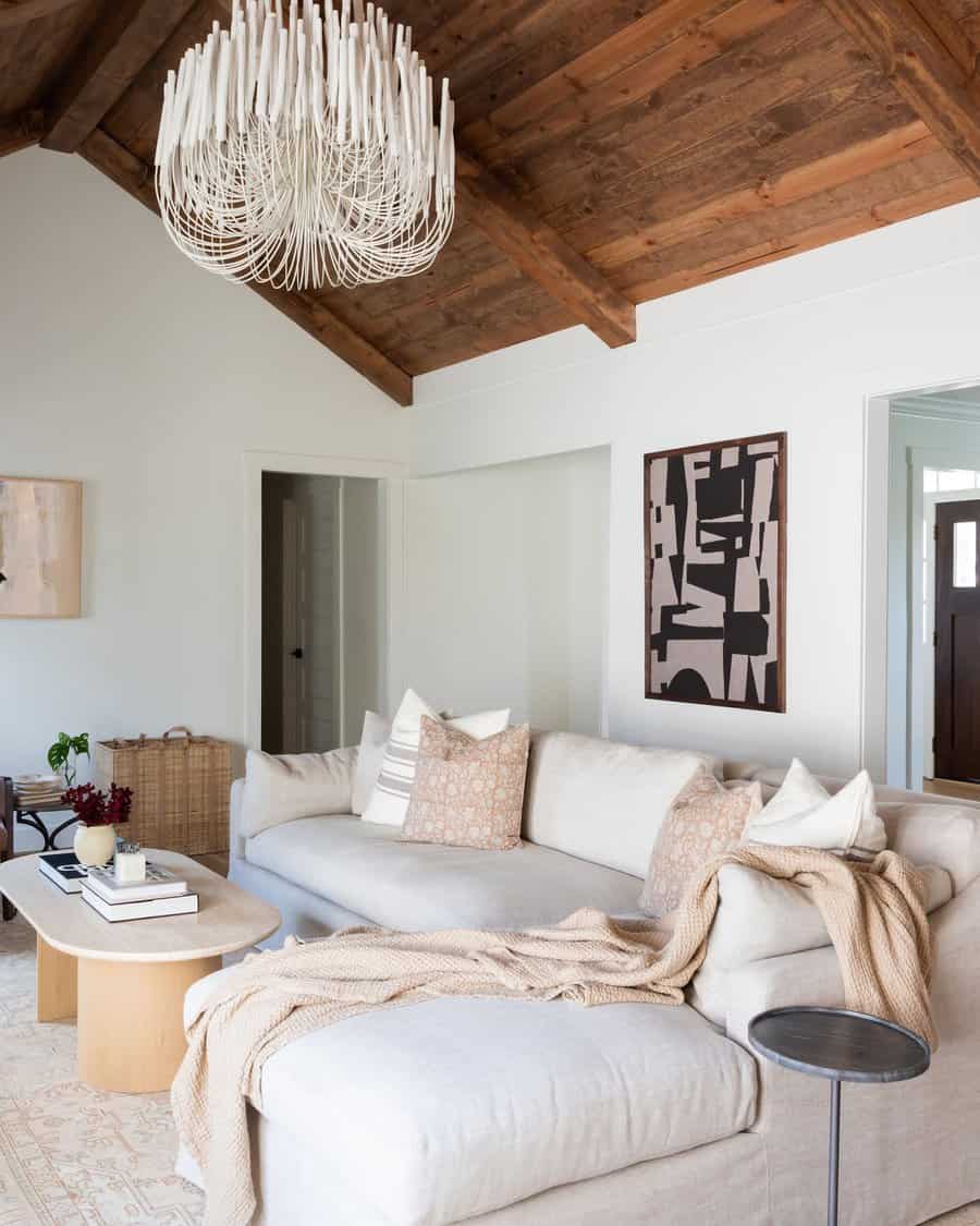 Wainscoting or chair rail paneling is another great architectural element that adds rustic or farmhouse charm to the living room. If your rustic living room is more industrial, consider corrugated metal for your wainscoting material. Otherwise, shiplap or beadboard are excellent living room wall additions.